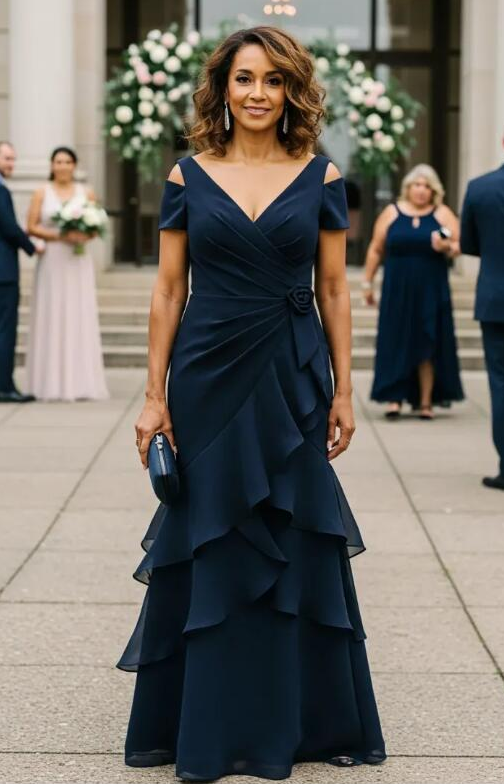 Sheath Navy Blue Chiffon Mother of Bride/Groom Dress