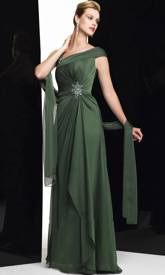 Sheath Sage Green Pleat Chiffon Mother of Bride/Groom Dresses With Beading